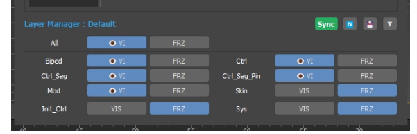 | Sync | 초록색 텍스트 버튼 | 현재 Layer Manager 상태를 3dsMax 레이어 시스템에 즉시 동기화합니다. 빌드 후 레이어 표시가 맞지 않을 때 누릅니다. |