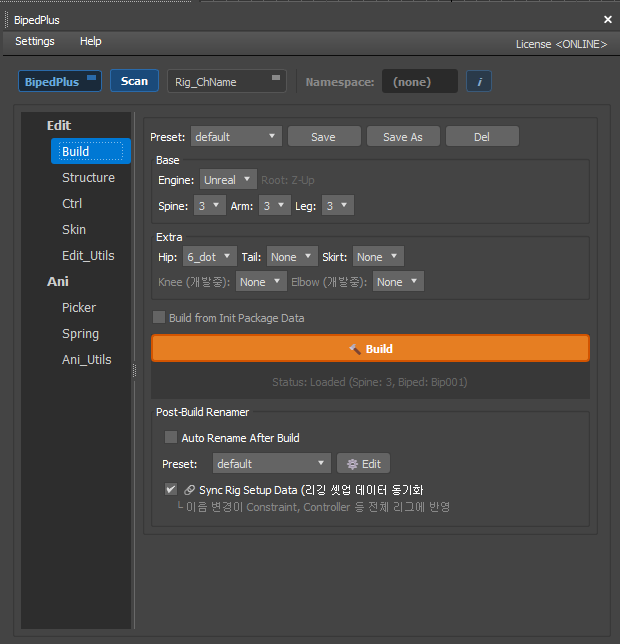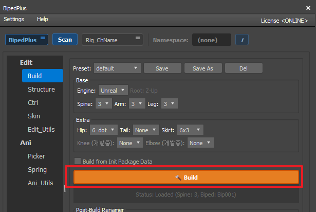 작업의 출발점: Biped 스캔 → 모듈 구성 → 빌드 실행