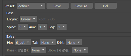 선택한 숫자만큼 Spine 본이 생성됩니다. Spine 3을 선택하면 3개, Spine 4를 선택하면 4개입니다.
