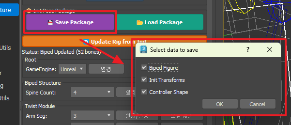 - 현재 Init 포즈, 모듈 구성, 빌드 설정이 패키지 파일로 저장됩니다.