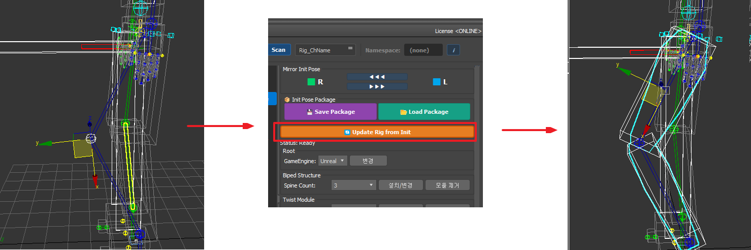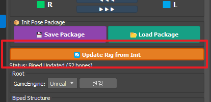 | Update Rig from Init | Init 포즈 변경 결과를 실제 리그에 반영 |