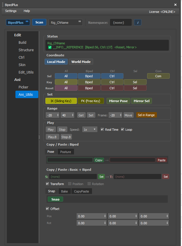 애니메이터가 일상적으로 사용하는 Selection / Key / Reset / Mirror / CopyPaste / Play 기능 모음