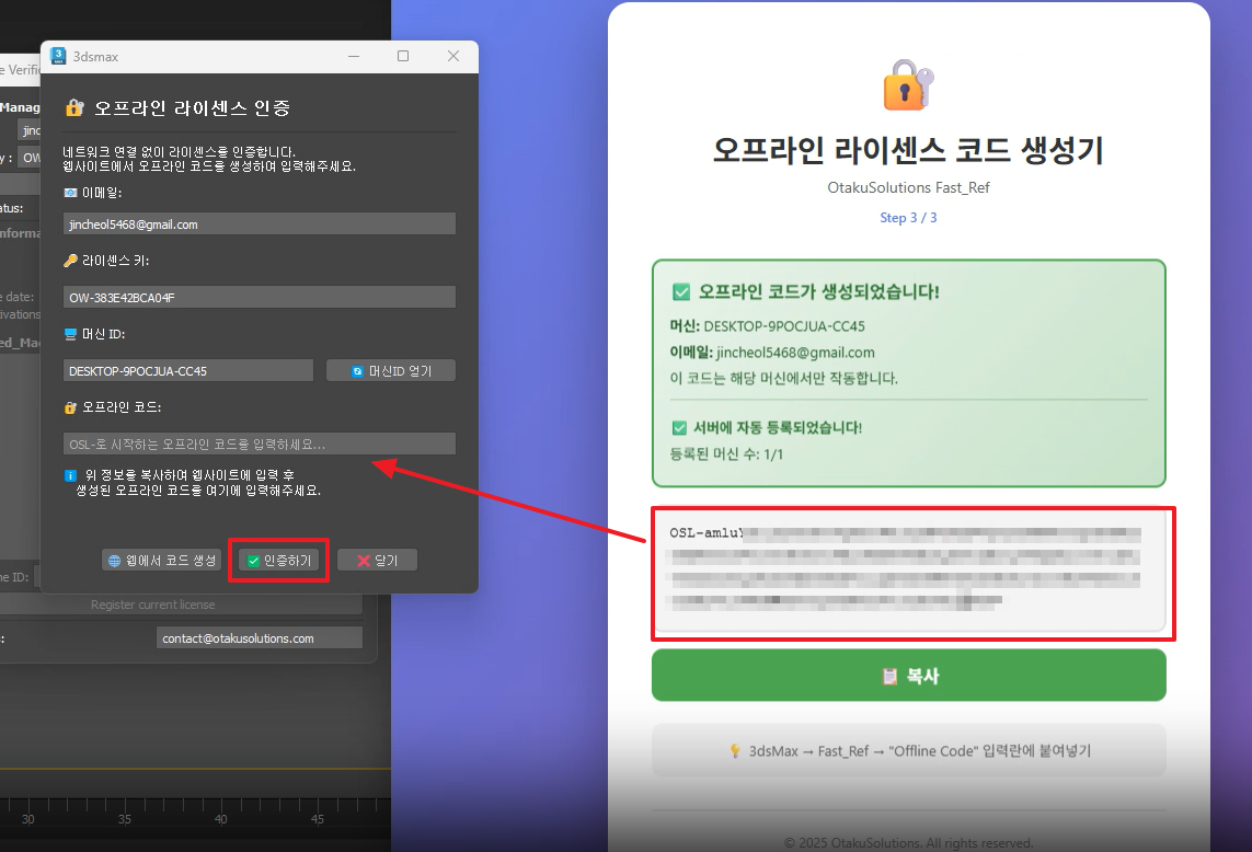 認証が成功するとオフラインコードが生成されますので、このコードをオフラインコード欄に入力し、