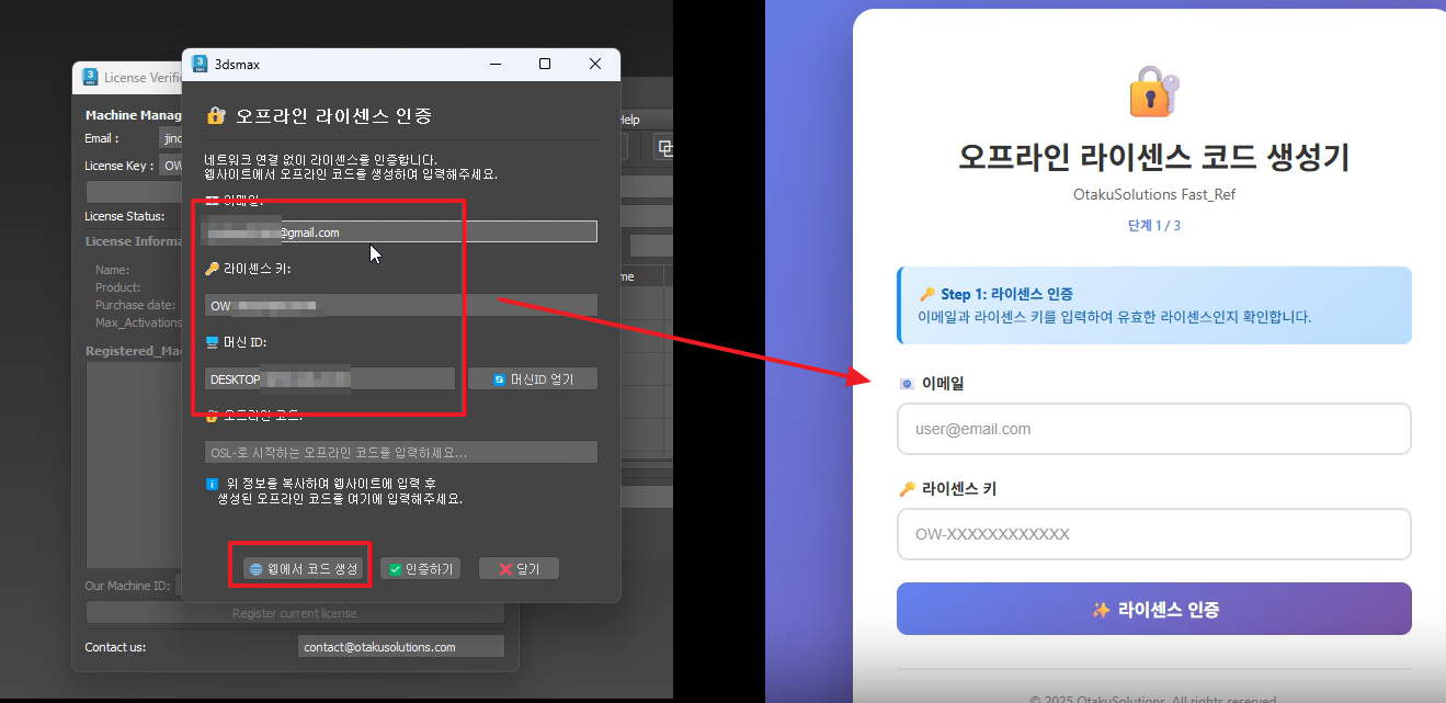 手順に従って 1.メールアドレス / 2.ライセンスコード / 3.マシンID を入力してください。