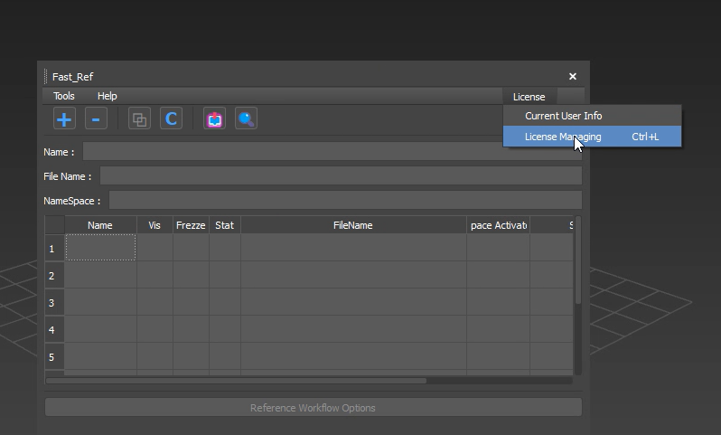 所有工具中都有 License → License Managing 菜单。点击该菜单后,