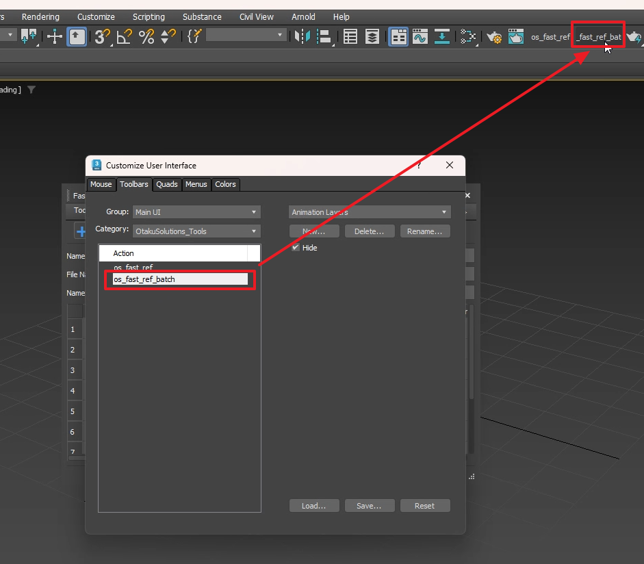 这是将已安装的功能注册到 3ds Max 顶部工具栏以便于使用的过程。