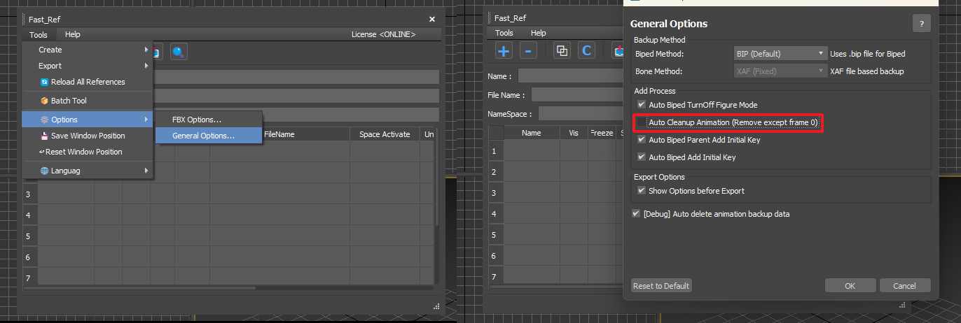 - 在 [Option] → **[General Option]** 中取消勾选 Auto CleanUp Animation。