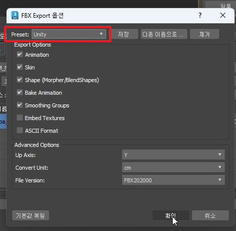 エクスポートの際は、ツール(Tool)メニューのFBX Exportオプションで適切なPresetを設定してください。