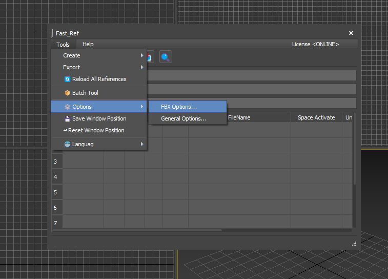 如上图所示,您可以通过 option → FBX Options 来配置 FBX 导出选项。
