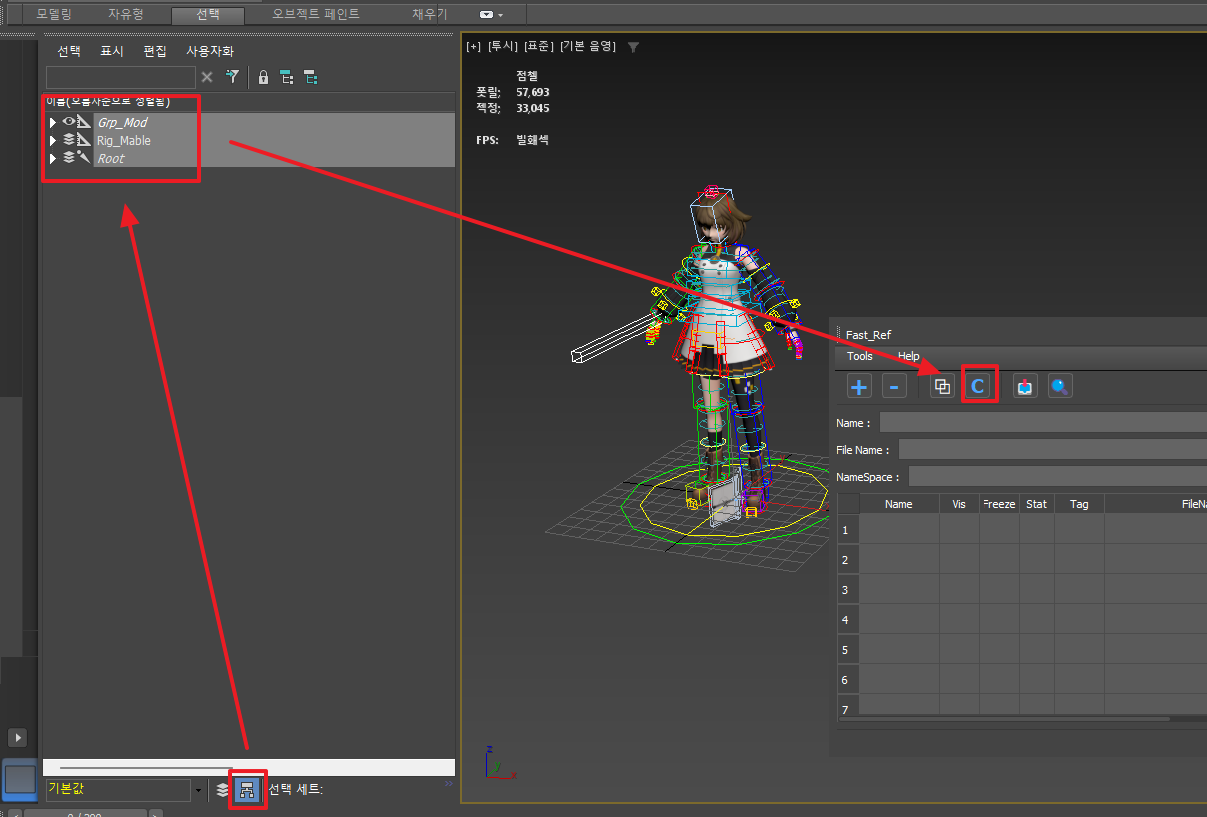 - 示例:如图所示将大纲视图切换为层级排序后,仅选择 Root、Grp_Mod、Rig_Mable 节点