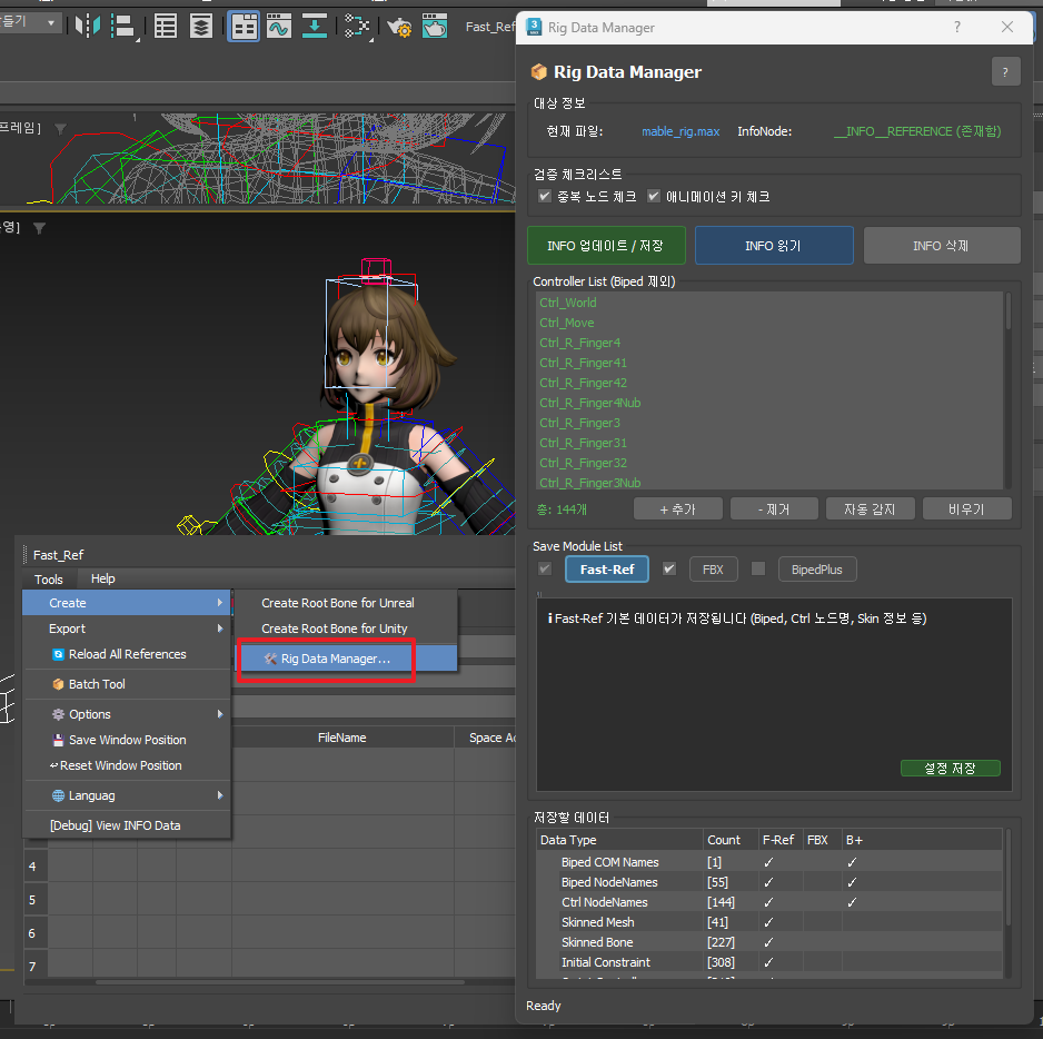 | Fast-Ref | [Tools 메뉴] → [Create] → [Rig Data Manager] |
