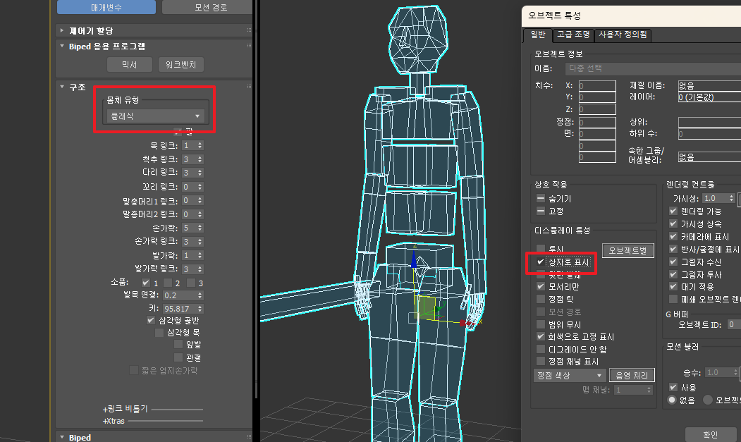 - Body Type を [Classic] に変更:Biped を Box 形態に切り替える際、最も正確なピボット位置を視覚的に確認できるモードです。